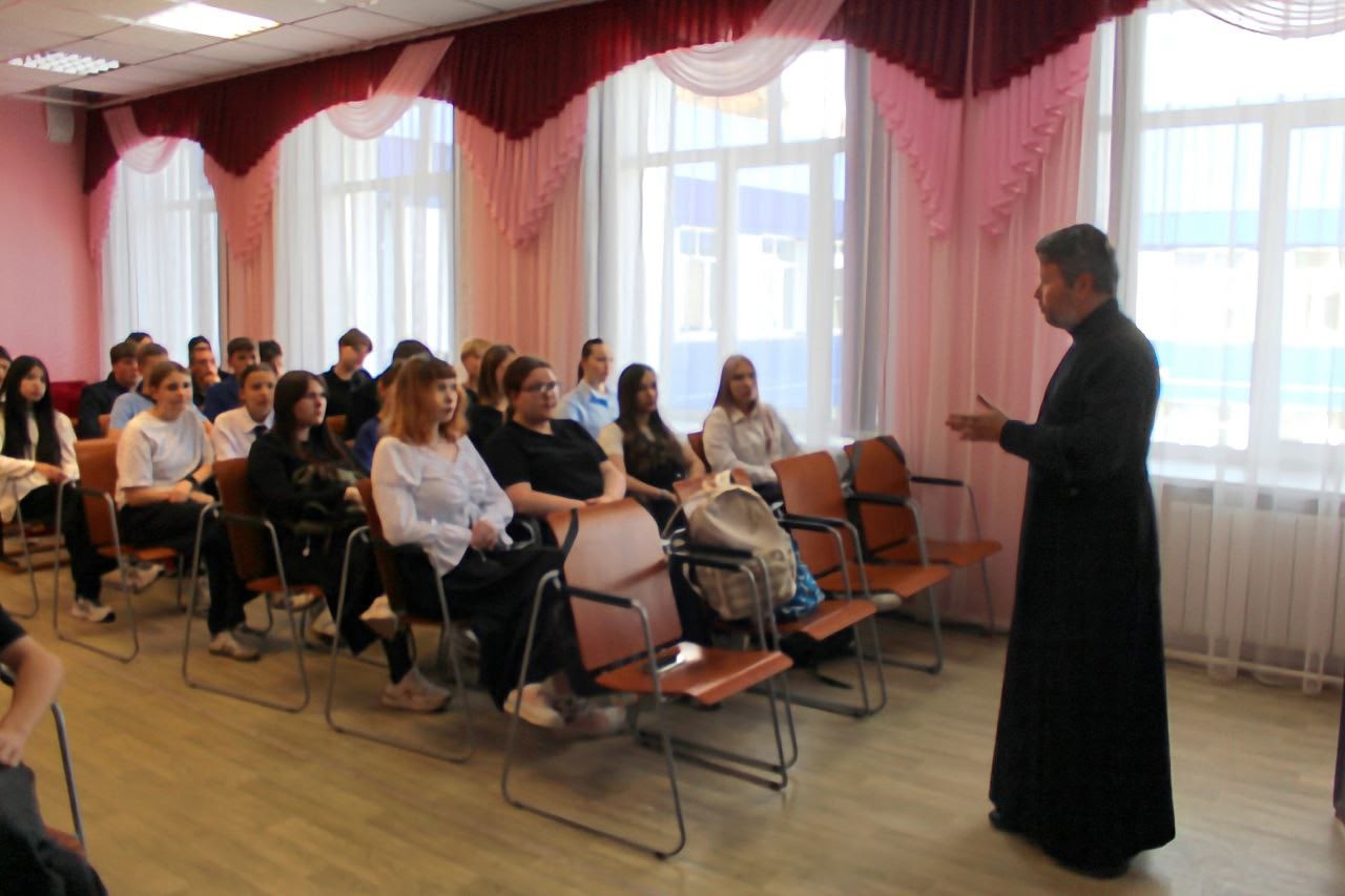17 сентября состоялась встреча учащихся 10–11 классов с настоятелем Свято-Троицкого храма с. Викулово протоиереем Владимиром Сергеевым в рамках проекта «Увлекательно о русском», осуществляемого при поддержке Фонда президентских грантов.