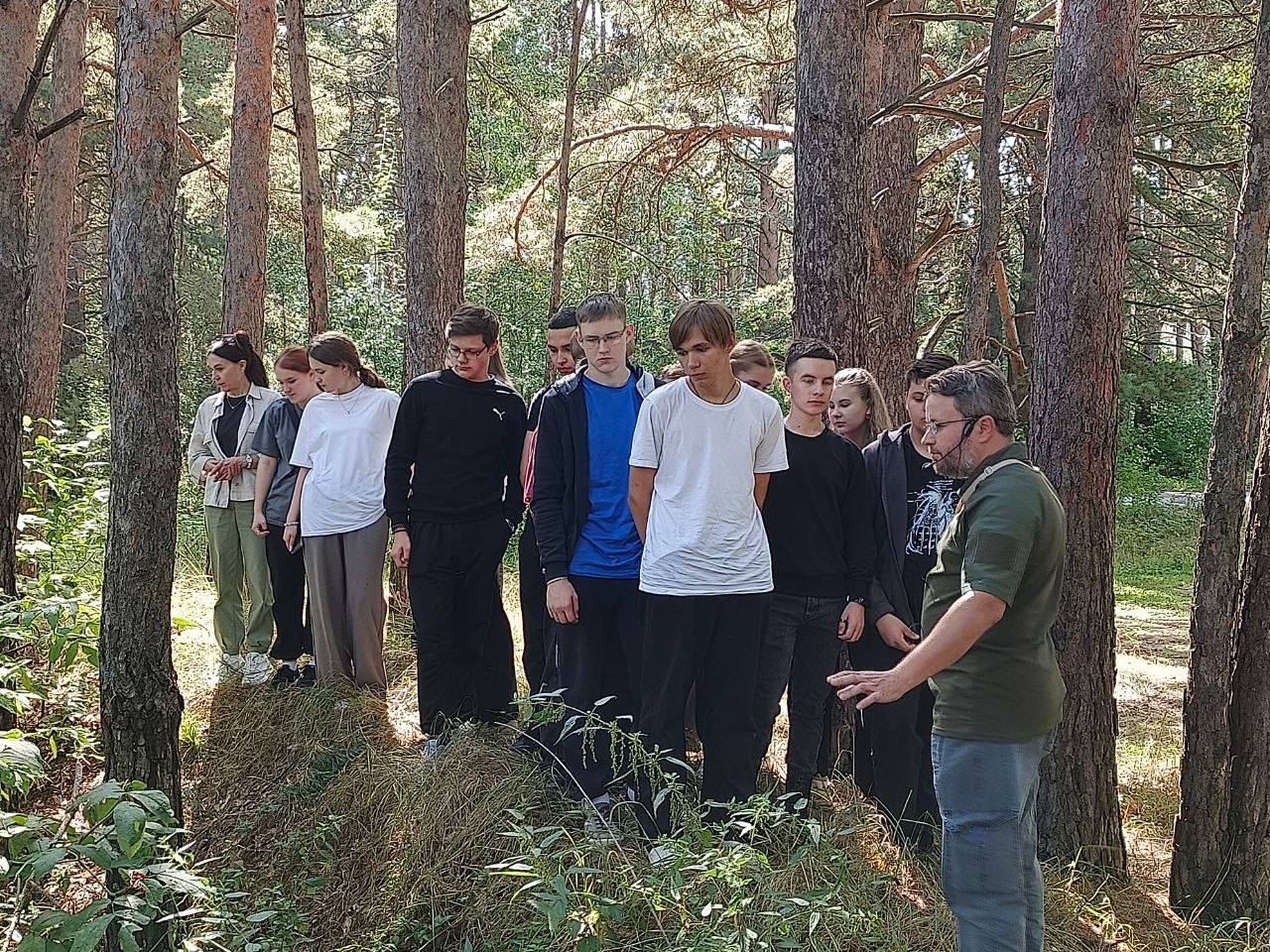 Но в этот раз он был необычен тем, что в начале маршрута ребята посетили места дислокации 229 дивизии 2-го формирования, где в январе 1942 г. солдаты проходили боевую подготовку и слаживание. На сегодняшний день остались блиндажи, поросшие травой и соснами, а на базе «СССР» сохранились траншеи и командирский штаб, но все это требует соответствующего ремонта и ухода. Рядом стоит часовня, которую освятил ныне покойный епископ Евтихий (Курочкин).