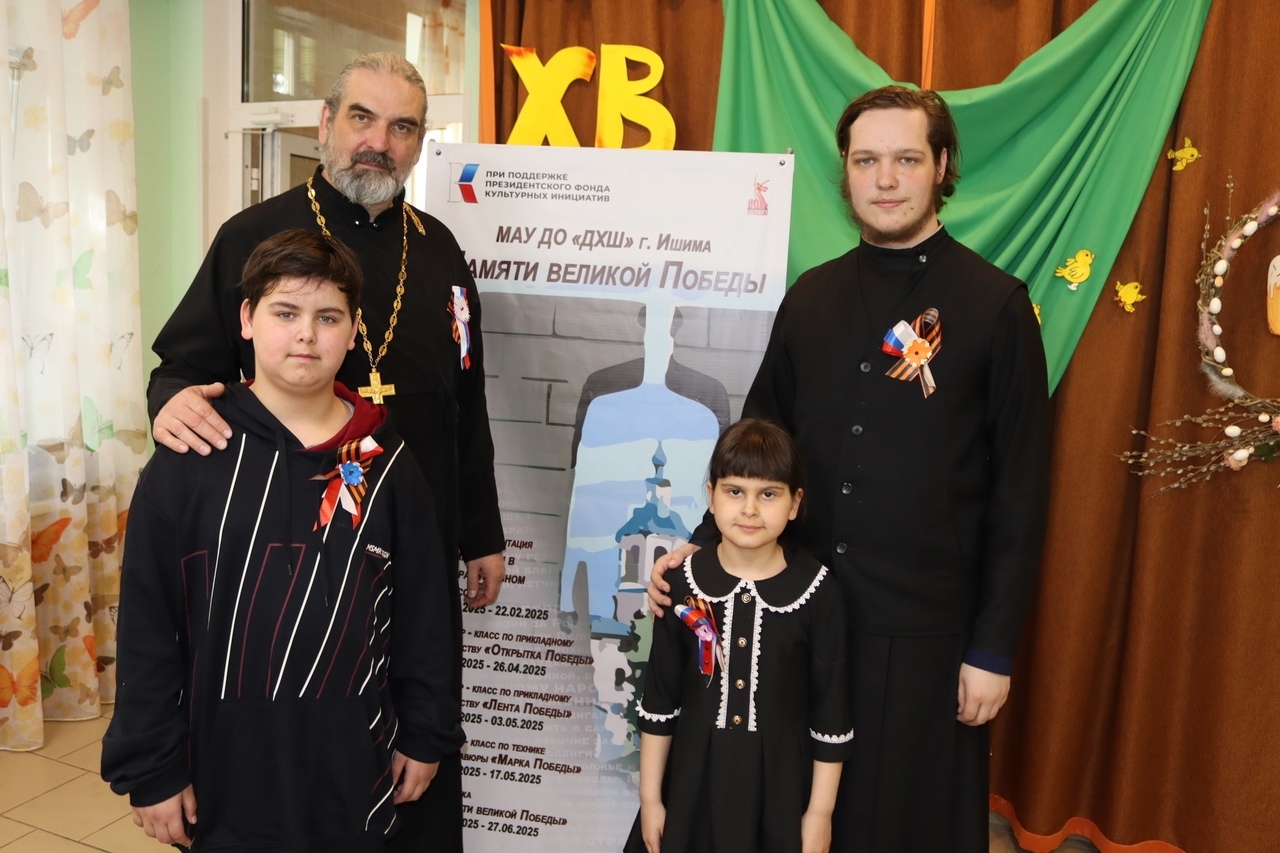 24 апреля в рамках проекта «Памяти Великой Победы» при поддержке Президентского Фонда культурных инициатив, педагоги детской художественной школы г. Ишима Лариса Емельянова и Элеонора Сечина провели мастер-класс «Лента Победы» для воспитанников социально-реабилитационного центра «Согласие». На мероприятие также были приглашены Настоятель Покровского храма отец Александр, матушка Мария, семинаристы и гимназисты из города Тобольска, которые приехали в город Ишим в рамках ежегодной миссионерской поездки, приуроченной к пасхальным дням. Посещение гостями из Тобольска социально-реабилитационного центра является традиционным.